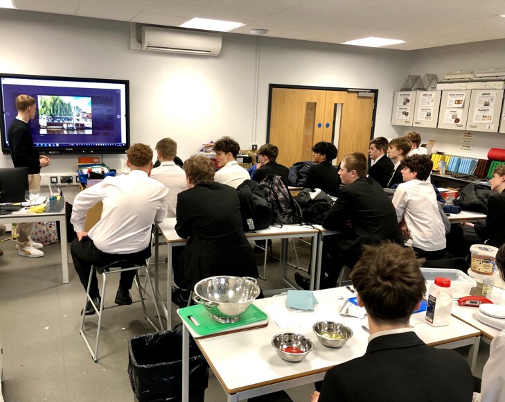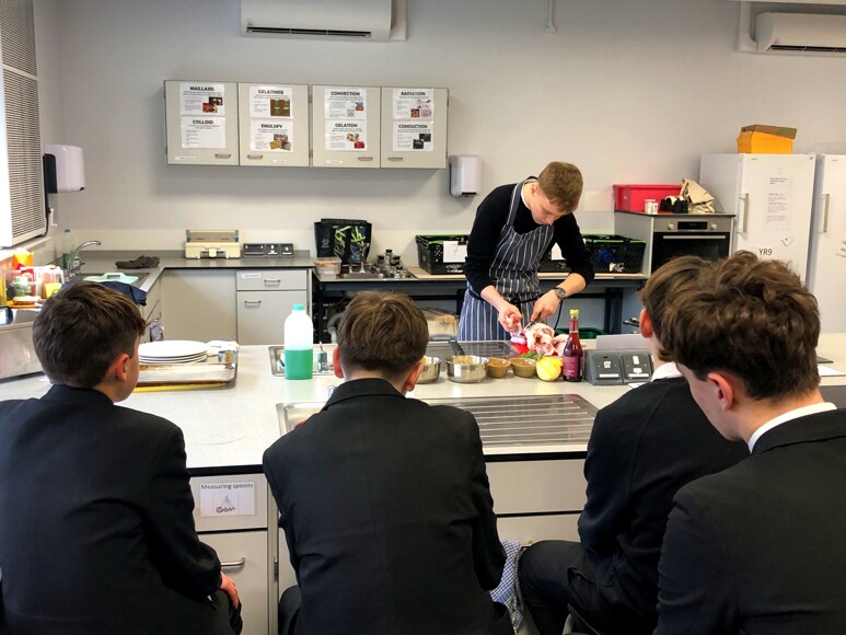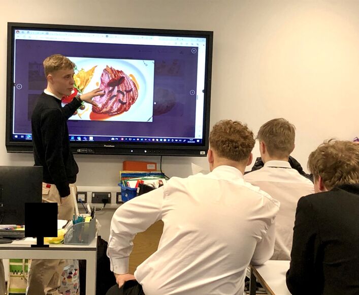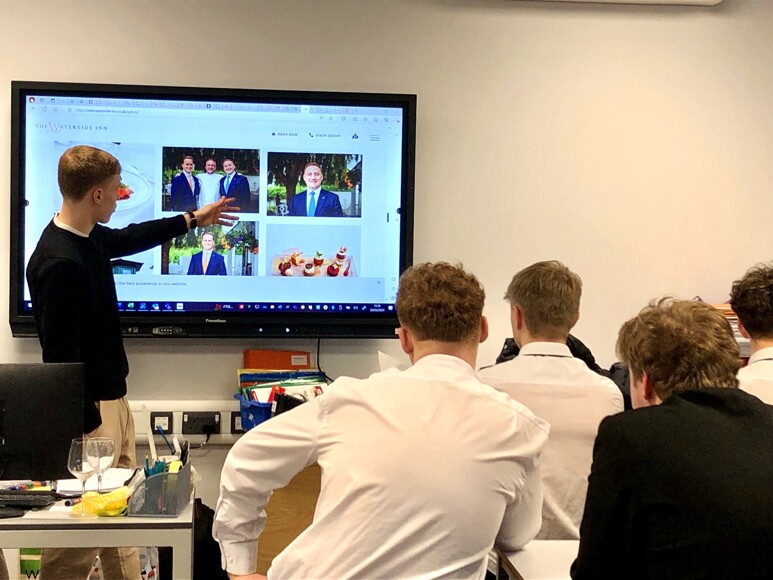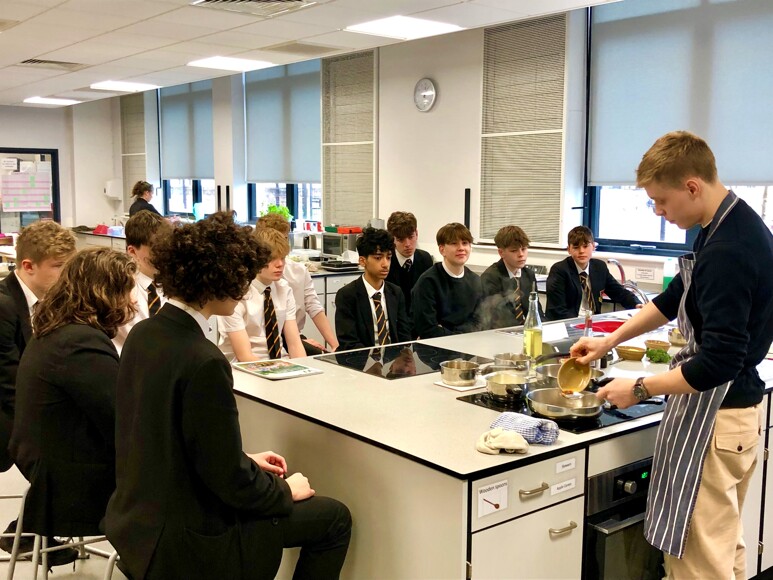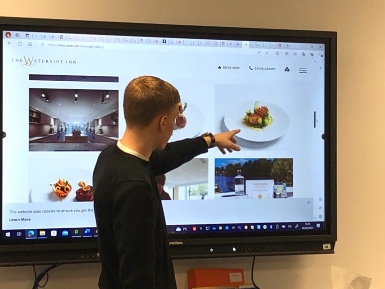 We were delighted to welcome back Cameron Jones (Class of 2020) to TWGSB this week who came to speak to the Food & Nutrition students about careers in the hospitality industry. Cameron has worked his way up one of the toughest known industries to gain a job working for the Roux Family at their prestigious restaurant, The Waterside Inn, Bray. This restaurant is one of only 9 in the UK to be awarded Michelin's highest award of 3 stars and only 138 in the world so it is a very special place to work indeed.