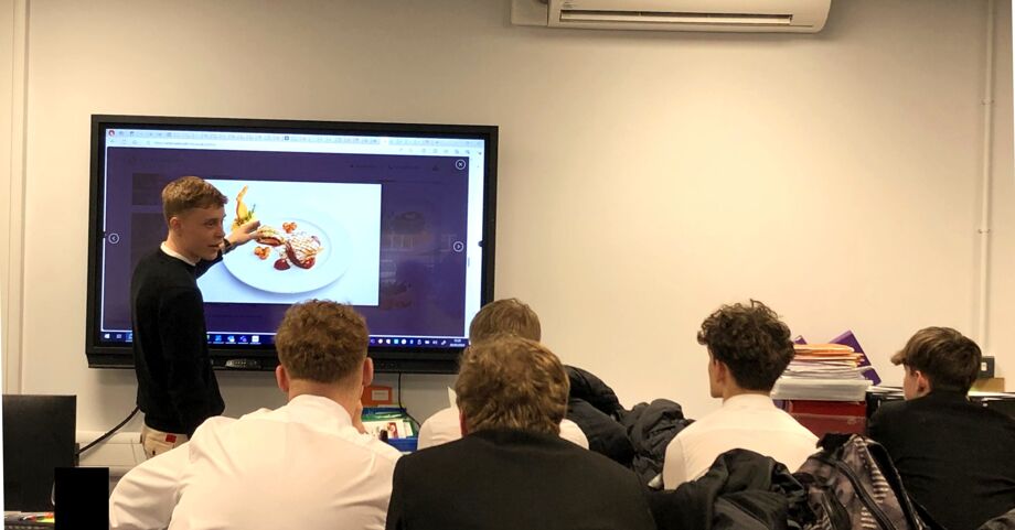 We were delighted to welcome back Cameron Jones (Class of 2020) to TWGSB this week who came to speak to the Food & Nutrition students about careers in the hospitality industry. Cameron has worked his way up one of the toughest known industries to gain a job working for the Roux Family at their prestigious restaurant, The Waterside Inn, Bray. This restaurant is one of only 9 in the UK to be awarded Michelin's highest award of 3 stars and only 138 in the world so it is a very special place to work indeed.