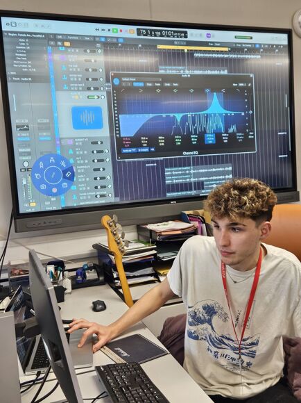 On another occasion, alumnus George Norman visited our Music Technology A Level students to deliver a two-hour masterclass. George shared his growing expertise on recording and mixing that he is gaining at BIMM, where he is in his second year of the Music Performance and Production degree course. The workshop included a clear presentation of the key tenets of recording, mixing and mastering, followed by some modelling of one of George’s current projects. Our students really took the opportunity to soak up new approaches that they will be able to use in completing their coursework this year and the department will be able to share George’s presentation with future students as well.