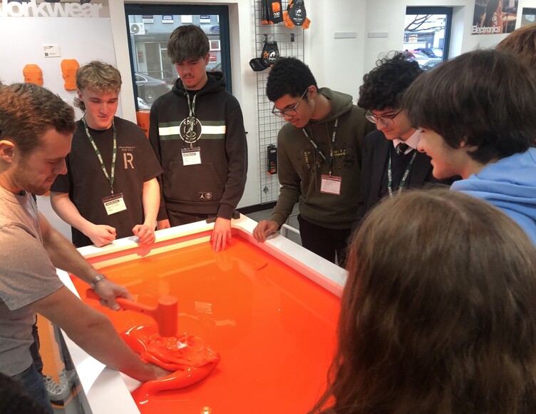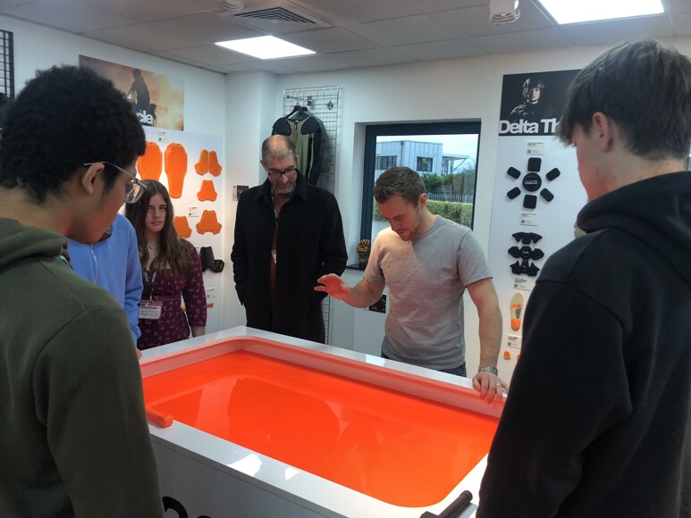 Our Year 12 Design and Technology students recently visited D3O, a company that develops advanced impact-protection products used in sports, industrial safety, electronics and defence applications. The students were given a demo of their material in action, as well as a tour of the company’s showroom, in-house laboratories, test rigs and prototyping stations. A Q&A session with the senior design team concluded the visit, giving the students valuable insight into working as a professional designer.