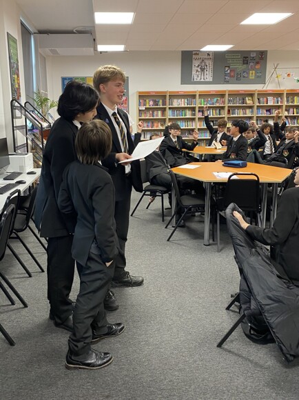 Austin Venes and Luke Chatfield: On Tuesday the Sixth Form had the pleasure of welcoming back two 2025 leavers – former Head Student Austin Venes and former senior prefect Luke Chatfield who gave a talk to Year 12. They outlined their experience of Sixth Form, the UCAS process and their tips for success. The talk was exceptionally well received and there were many students who stayed longer to ask further questions.