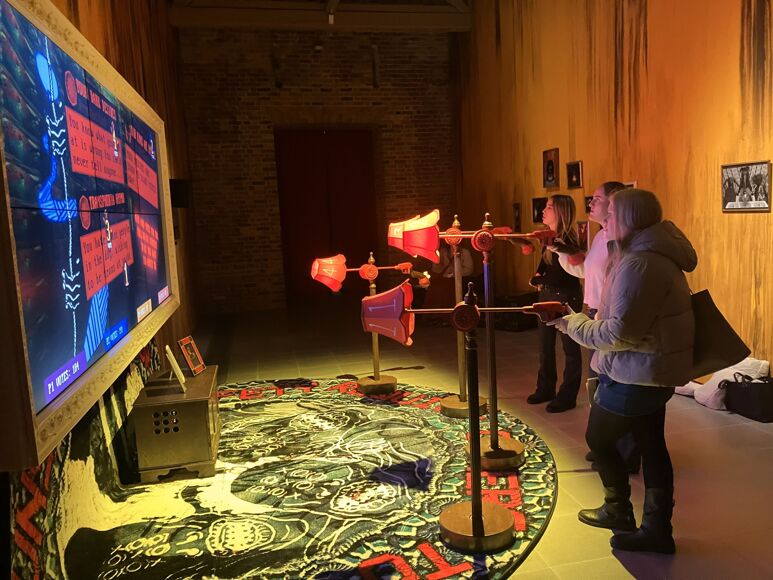 At the V&A, we saw a remarkable variety of art, design and decorative objects, including the mechanical marvel ‘Tippoo’s Tiger’, the Meissen porcelain fountain, Donatello’s ‘Chellini Madonna’ bronze roundel and the Dale Chihuly glass chandelier in the rotunda, demonstrating how craftsmanship and creativity evolve across cultures and time. At the Serpentine Galleries, we explored two contemporary exhibitions: ‘Peter Doig: House of Music’, an immersive experience combining painting with curated sound zones that examine music and communal interaction, and ‘Danielle Brathwaite‑Shirley: THE DELUSION’, an interactive video game‑inspired installation addressing polarisation, censorship and social connection, which challenged our ideas about audience participation and the boundaries of artistic media.